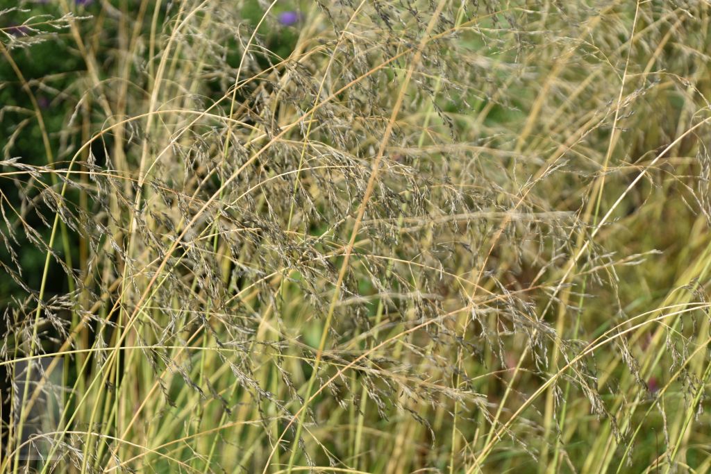 Breedbladig gras dat in de late zomer en vroege herfst uitbundig bloeit met grijze halmen.